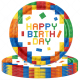 Kit de fiesta de cumpleaños con bloques de construcción, mantel, platos y servilletas divertidos estilo Gobricks para decorar fiestas.