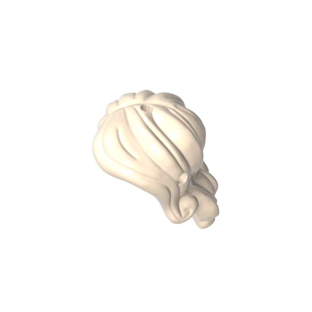 Minidoll con cabello largo y ondulado, raya al lado derecho, con lados cortos, 2 agujeros (uno en la parte superior y otro en el lateral) (Ariel)