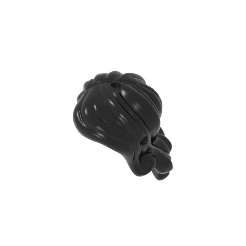 Minidoll de pelo largo ondulado, raya al lado derecho, con laterales cortos, 2 agujeros (uno en la parte superior y otro en el lateral) (Ariel)